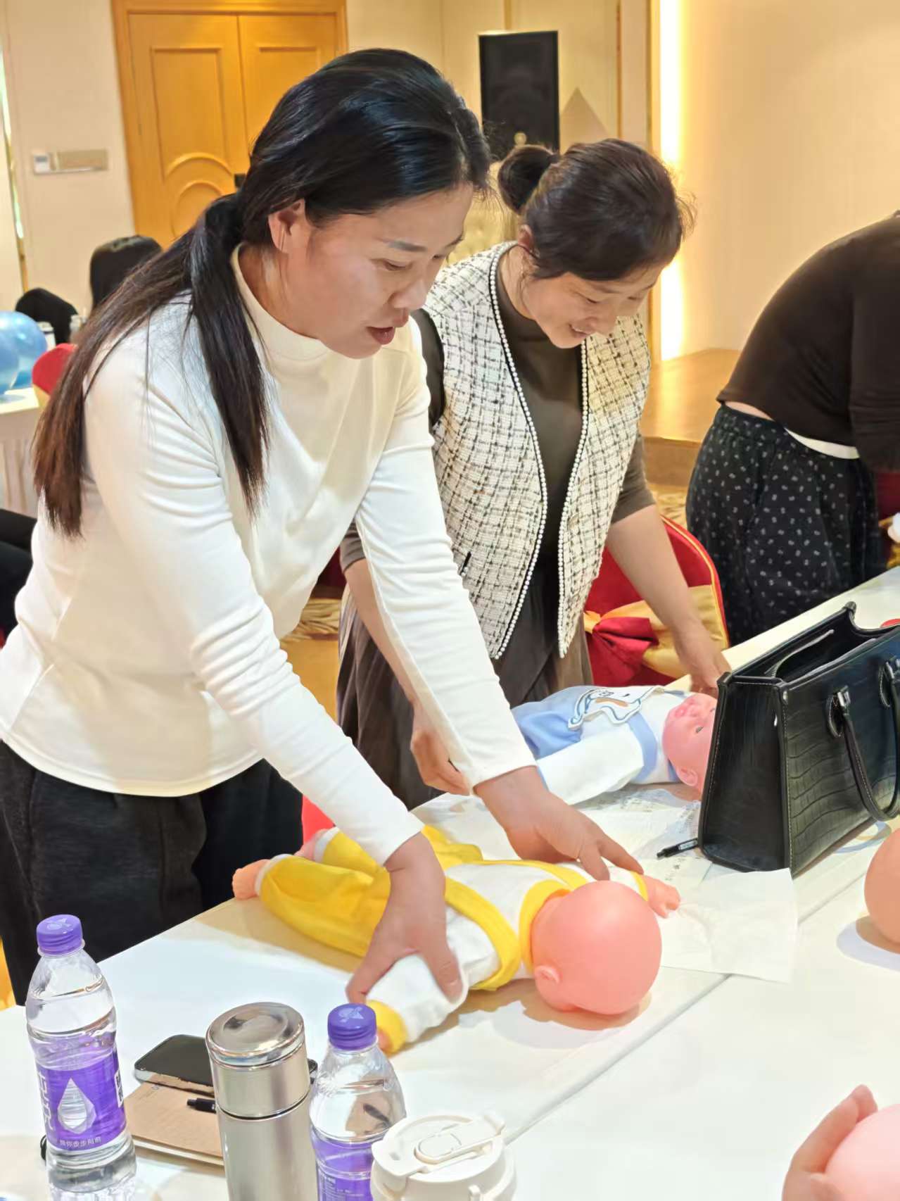 周老师的培训则聚焦于服务的基石——专业技能。她系统性地梳理并讲解了0-3岁婴幼儿日常照护、科学喂养、早期潜能开发及常见病预防等核心模块。课程采用“理论讲解+实操演示+分组练习”的模式,确保每一位学员都能将标准化的操作流程和最新的育儿理念学懂吃透,以便回去后能高效地培训和督导旗下的育儿嫂团队,筑牢服务质量的生命线。