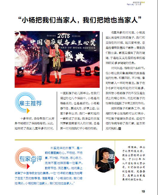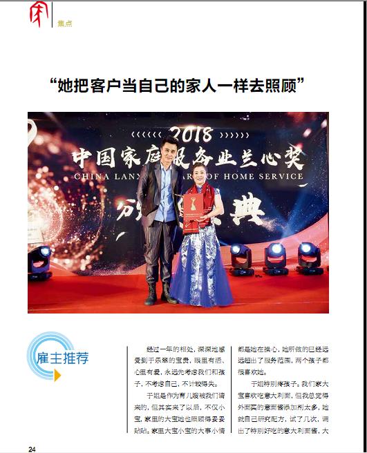 (首届兰心奖获得者登上《家庭服务》杂志)
