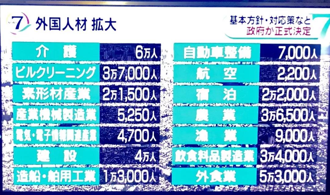 从明年四月份开始直到未来5年内,明确标记的14种行业领域内预计引进外国人34万人左右,下面是具体预估数据。